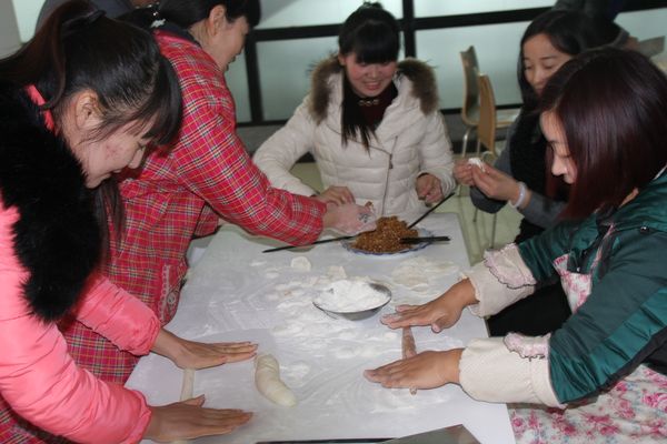 我公司領導組織各部門人員以及一線工人,弘揚毛主席“自己動手,豐衣足食”的作風,東起全體員工自己動手包餃子。在公司領導的組織下,大家開始有秩序的進行準備工作,系上圍裙,有的和面、有的搟皮、有的做餃子餡。大家分開兩撥,這邊和面,那邊飽餃子,氣氛很活躍。同事們以迅雷不及掩耳之勢完成了準備工作,準備工作完成后,進入包餃子階段,雖然很多同事不怎么會包餃子,但是在別人的幫助下很快進入狀態(tài)。看著一個個新鮮出爐的餃子,同事們的表情非常精彩,相互調侃的的話也漸漸多起來,包餃子工程進入***階段,氣氛一時異?;馃幔粗聜円粋€個熱情洋溢的表情,一盤盤“奇形怪狀”的餃子真是羨煞旁人!